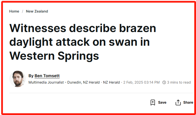 1月2日(周日),奥克兰Western Springs park(中区鸭子湖)发生一起动物虐待事件。