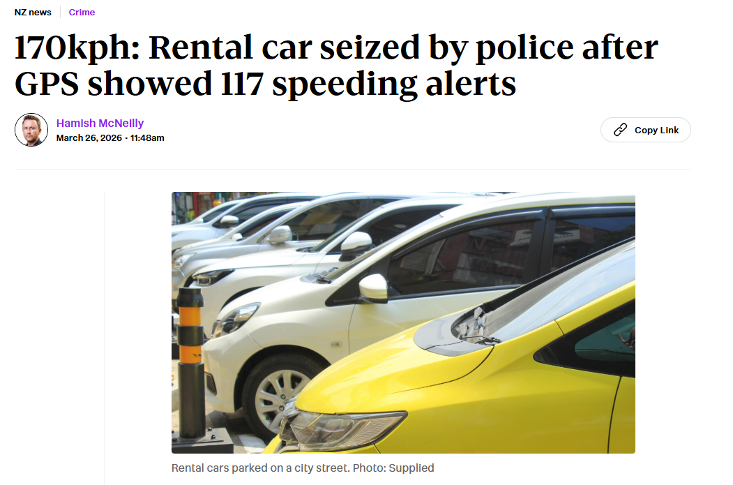 新西兰警方通报,一辆租赁车辆因多次严重超速被查扣。事件发生在南岛南部地区,警方称该车在数日内多次违反限速规定,情况相当严...
