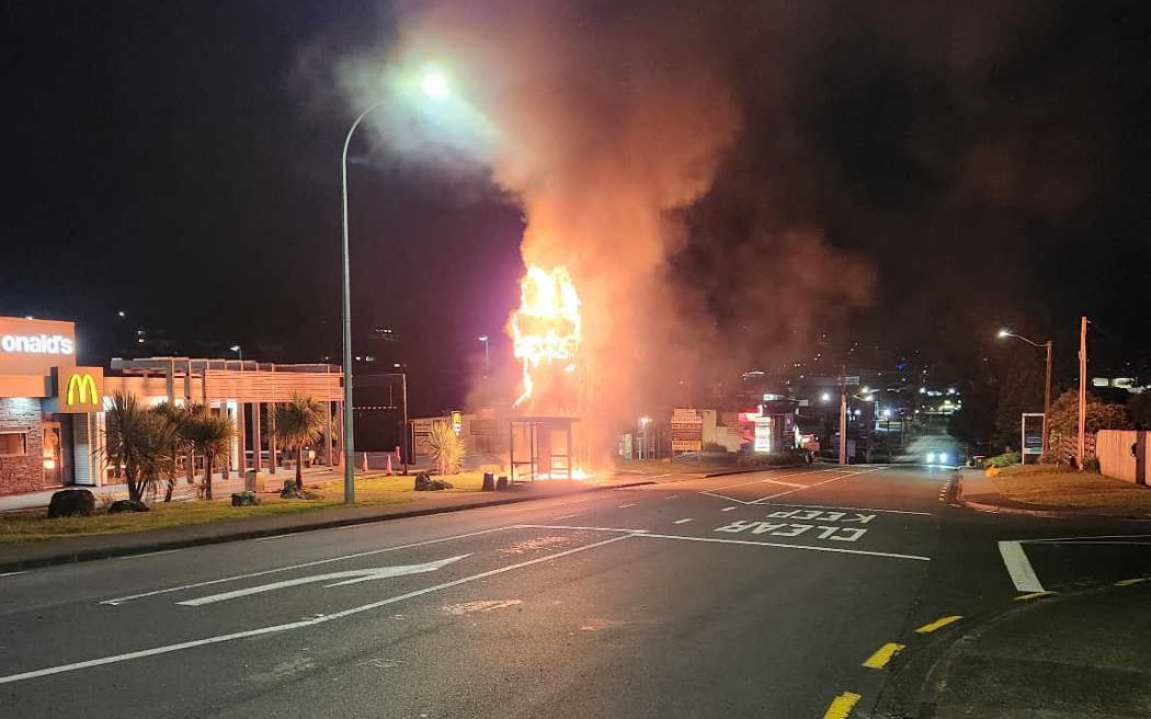 昨晚,一名Whangaparāoa男子目睹当地一家麦当劳的M拱门标牌起火。