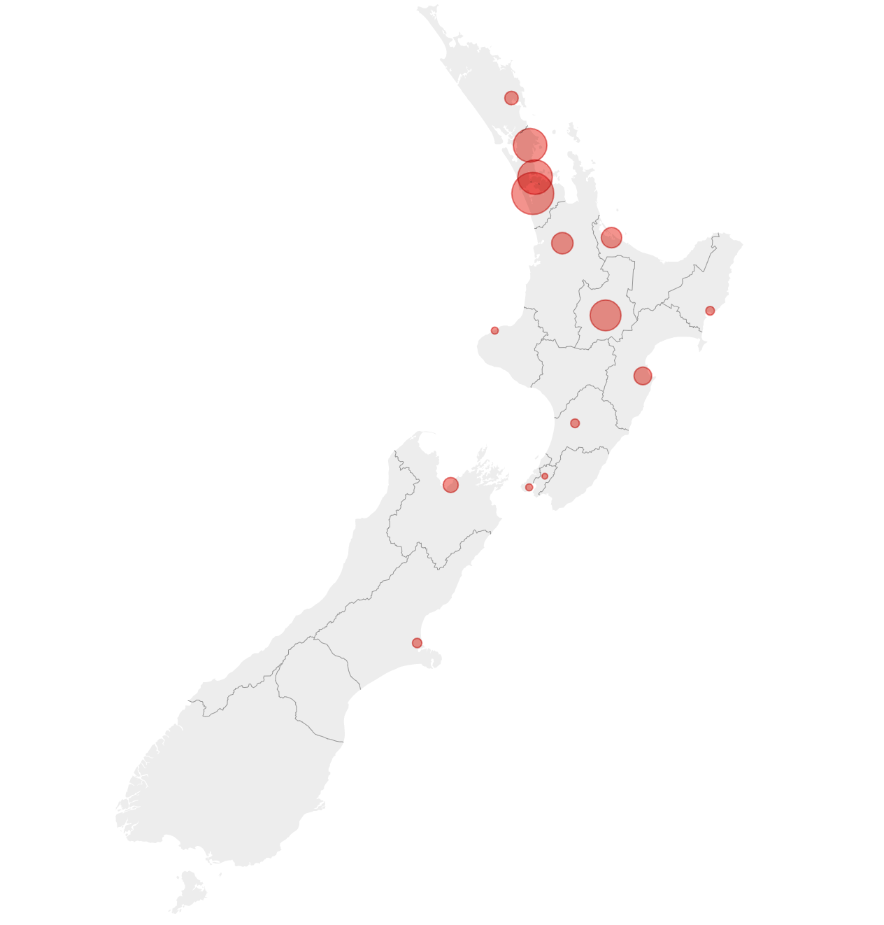 住院病例:11;北岸:1个;Middlemore::4;奥克兰:2;罗托鲁瓦:3,怀卡托 1