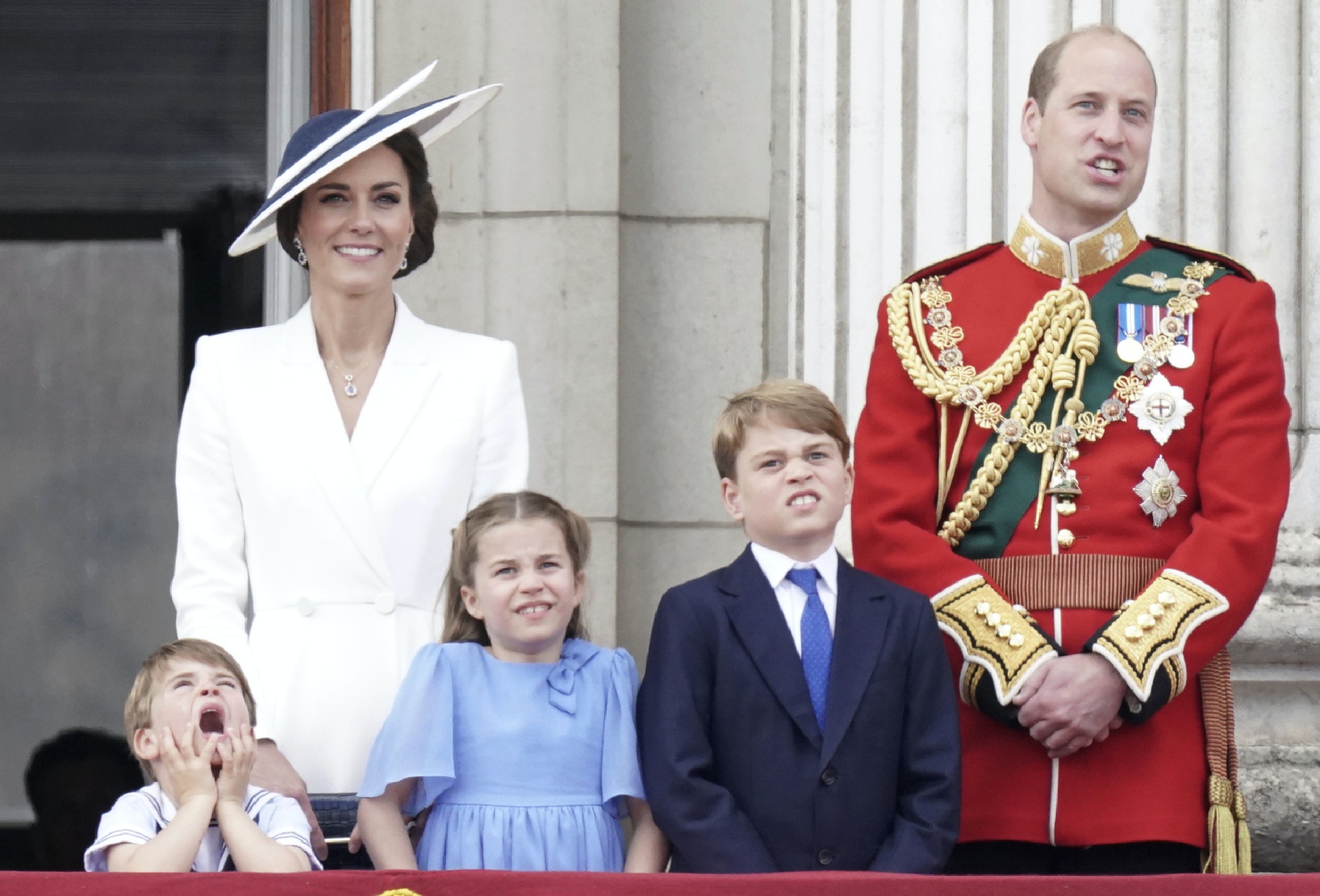 同时还有查尔斯王子、威廉王子、凯特王妃和乔治王子,夏绿蒂公主,路易王子也都在身边。